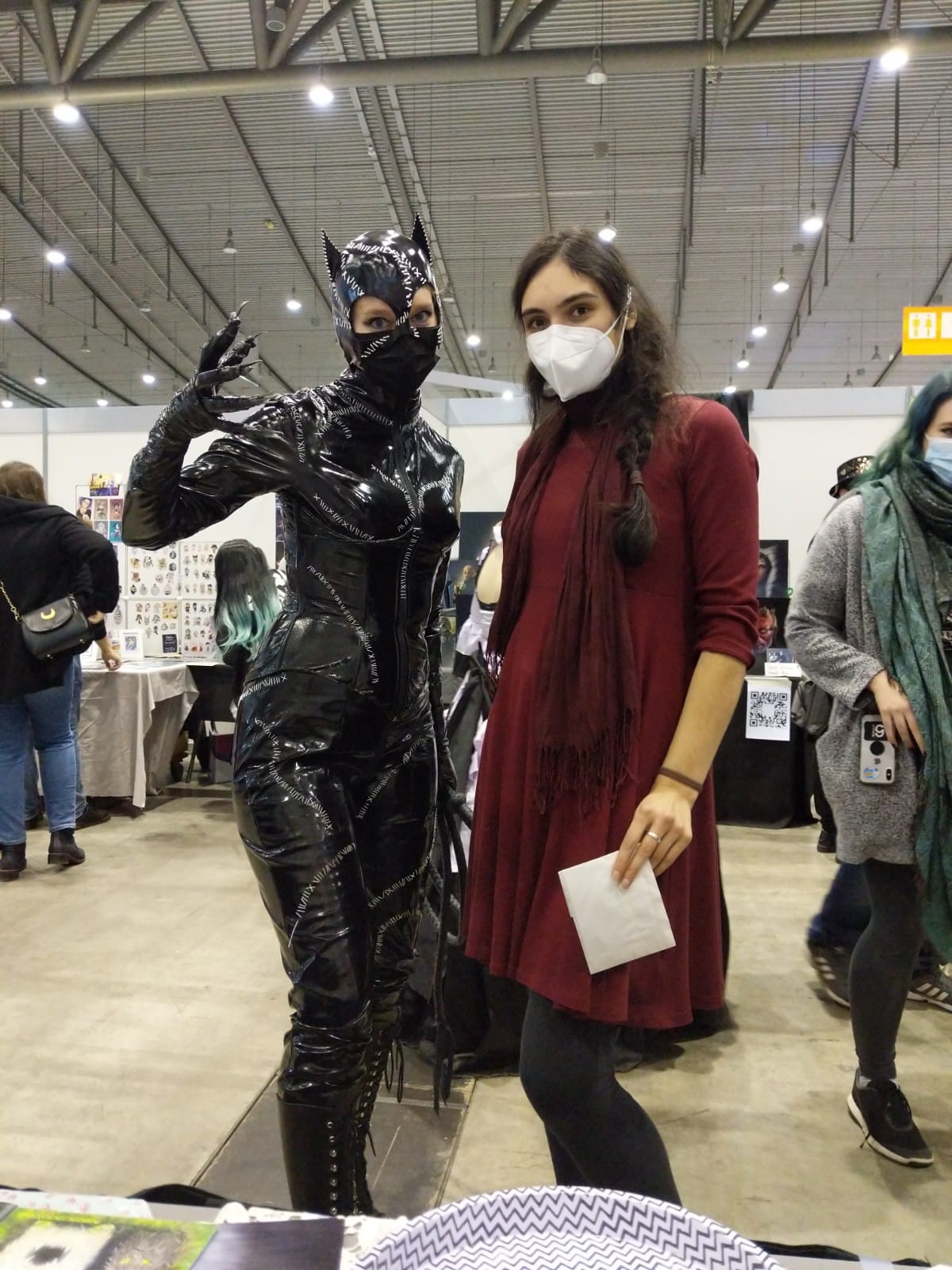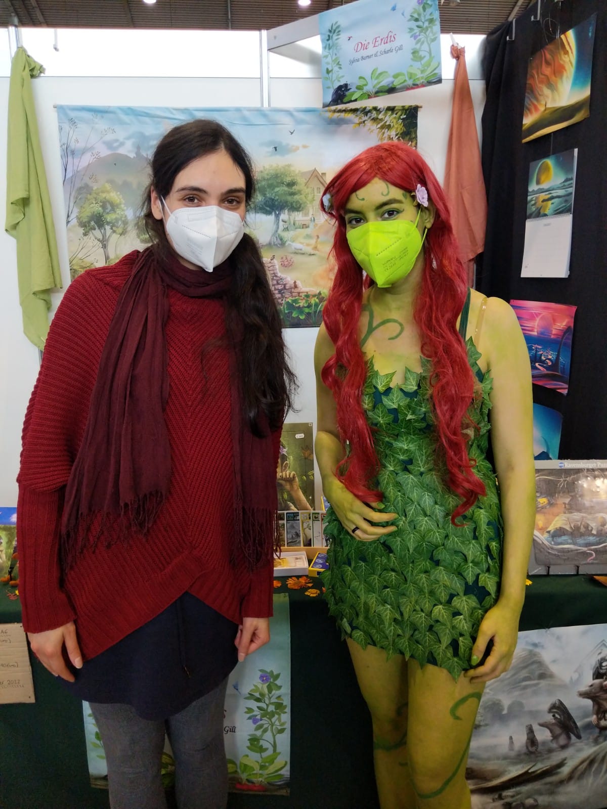 Das typische ComicCon- Publikum sind „Nerds“ mit einer Vorliebe für Fantasy und Science- Fiction. Charlottes faszinierender Sci-Fi-Kalender passte perfekt zu den Themen der Con.  Und auch die Erdis schlugen sich wacker zwischen all den Berühmtheiten! Wie aufregend, als sich Poison Ivy mit Charlottes prächtigem Banner fotografieren ließ und Catwoman die Illustrationen bewunderte! Manch einer grübelte sichtlich, welcher Comicreihe „die Rattenpost“ wohl  entsprungen war!