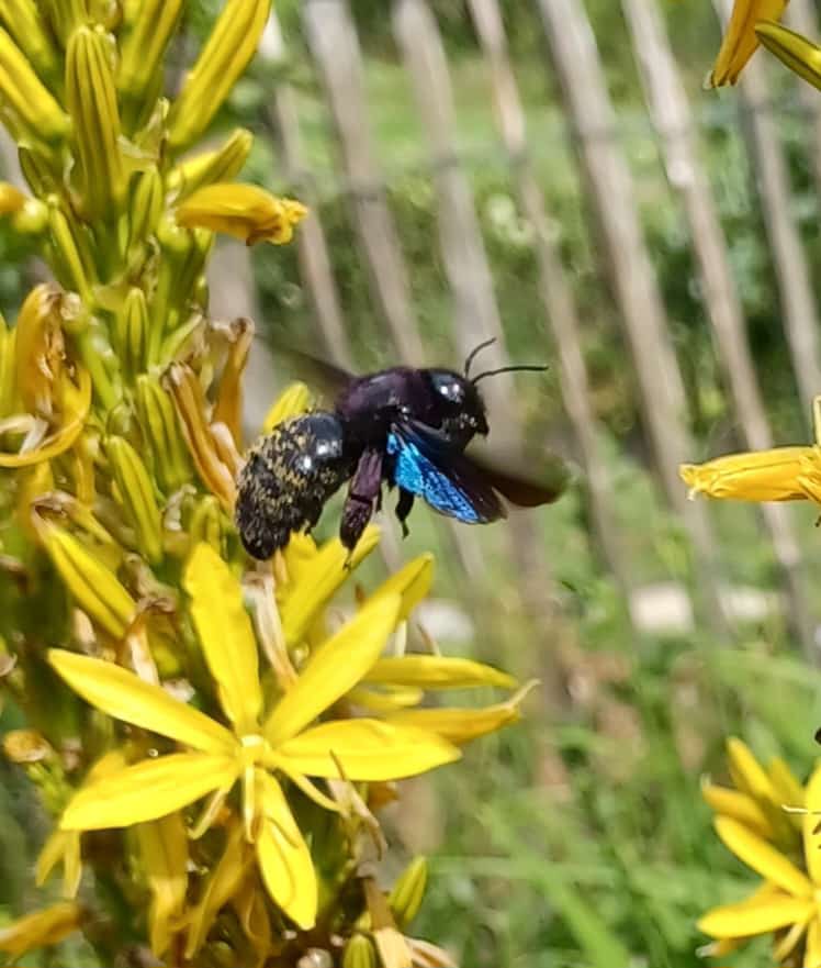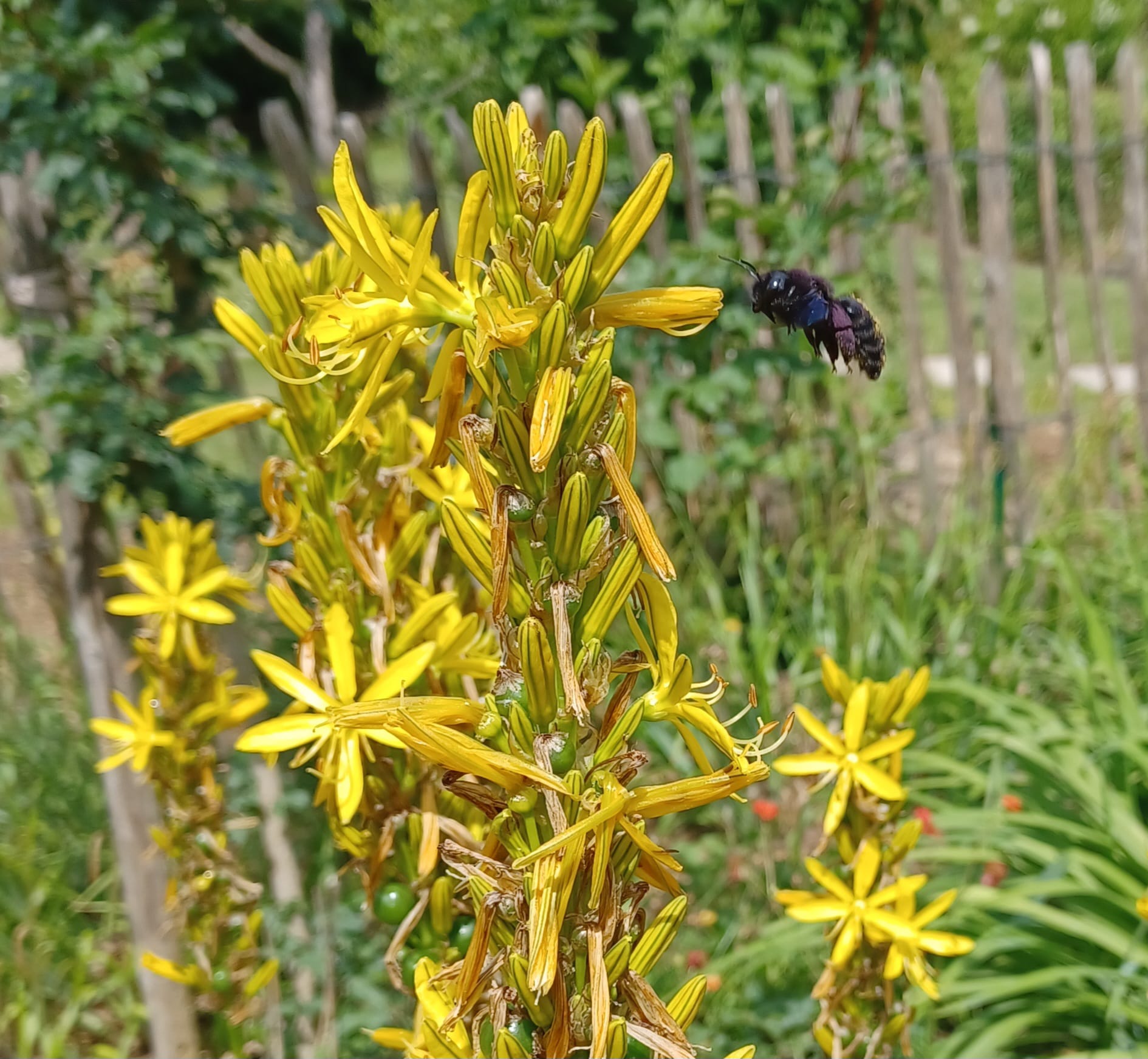 Ganz beeindruckend war noch ein Garten, in dem ein älteres Ehepaar allerhand besonderes Gemüse angepflanzt hat. Außerdem gab es dort ein riesiges Insektenhotel, indem unter anderem Grabwespen, Wegwespen und Schornsteinwespen wohnten. Die Fotos unten stammen aus dem Garten, die das Ehepaar selbst mit installierten Kameras fotografiert hatte.