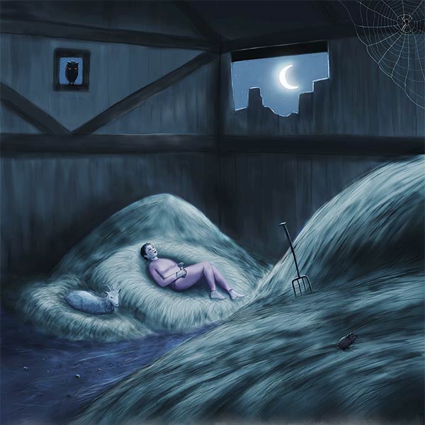 „Mäh äh äh äh!“, meckerte Grete, und nochmals ener gischer: „Mäh äh äh äh!“ Seufzend schnappte Oma ihre Wolldecke und begab sich zur Ziege in den Schuppen neben dem Haus. Mit frischem, würzigem Heu richtete sie ein Lager und legte sich neben die Geiß. Sie streichelte Grete und sang leise und besänftigend: