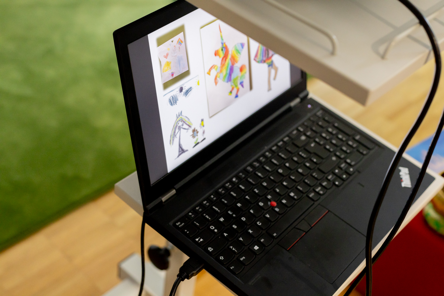 Ich habe auch schon eine Idee wo diese Lesung stattfinden könnte. Da meine Tochter seit kurzem in die Kita geht, Frage ich dort nach und tatsächlich sind sie dort offen für eine Lesung. Das freut uns. Doch dann kommt die Nervosität. Wie sollen wir das denn schaffen unser eigenes Buch vorzustellen, wo uns doch soviel an der Geschichte liegt. Außerdem haben wir selbst noch nie eine Lesung gesehen und wissen gar nicht, wie sowas abläuft. Zum Glück haben wir noch etwas Zeit und wir besuchen eine Bilderbuchshow in der Stadtbibliothek Zuffenhausen. Plötzlich sprüht bei uns die kreative Energie und wir beschließen ebenfalls eine richtige Bilderbuchshow zu kreieren mit animierten Bildern und Tageslichtprojektor.