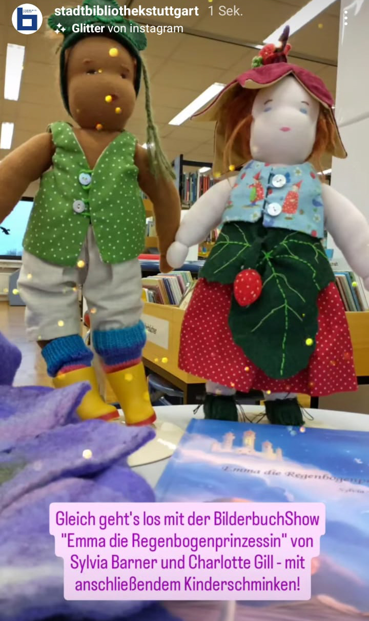 Ab da waren wir dann richtig im Flow und fragten noch an weiteren Stellen an. Wir bekamen sogar die Möglichkeit, in zwei Stadtbibliotheken aufzuführen. Einmal mit mehreren Kindergartengruppen mit anschließender Schminksession.